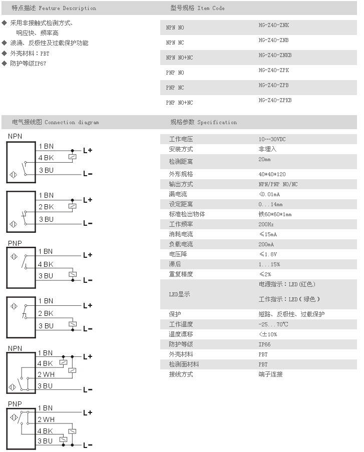 组合型接近传感器 HG-Z40-ZNK,HG-Z40-ZNB,HG-Z40-ZNKB,HG-Z40-ZPK,HG-Z40-ZPB,HG-Z40-ZPKB,