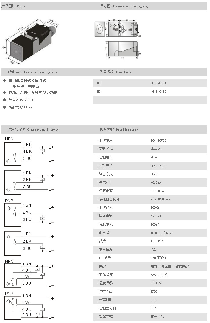 组合型接近传感器 HG-Z40-ZK,HG-Z40-ZB,