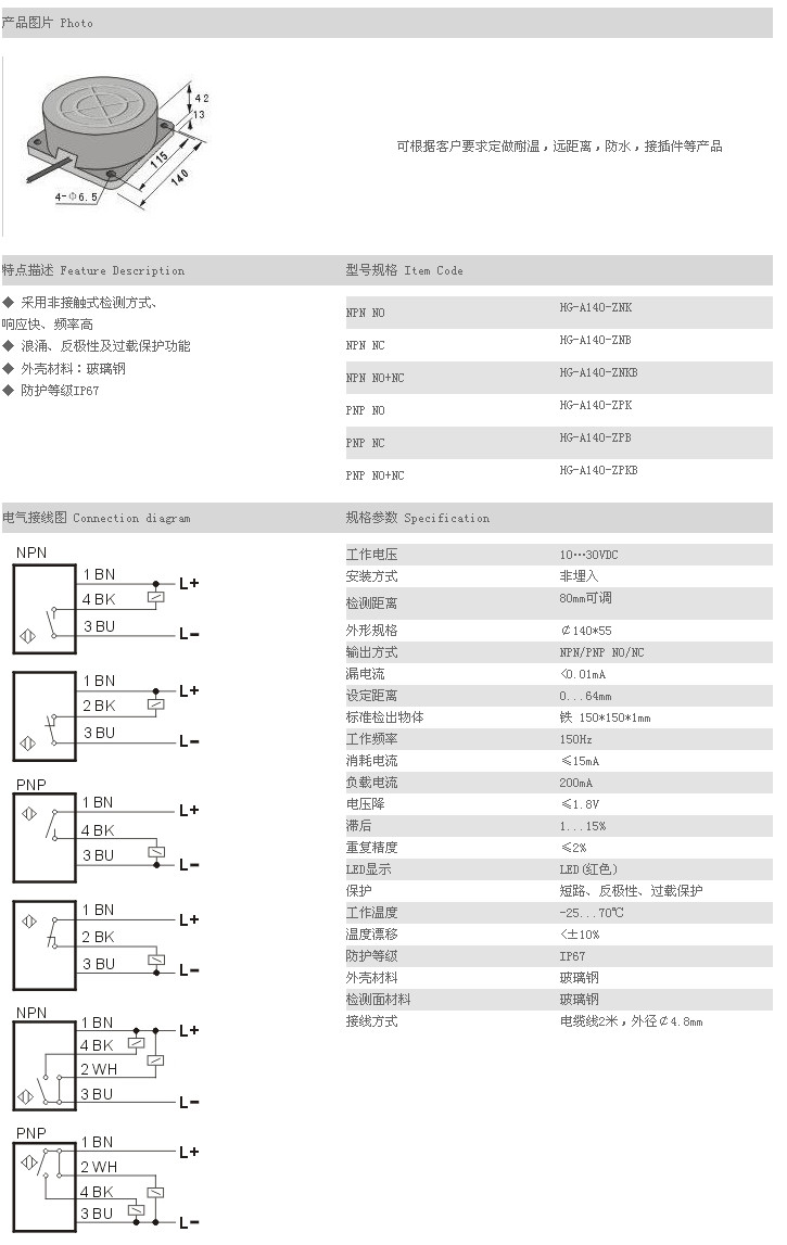 饼型接近传感器 HG-A140-ZNK,HG-A140-ZNB,HG-A140-ZNKB,HG-A140-ZPK,HG-A140-ZPB,HG-A140-ZPKB,