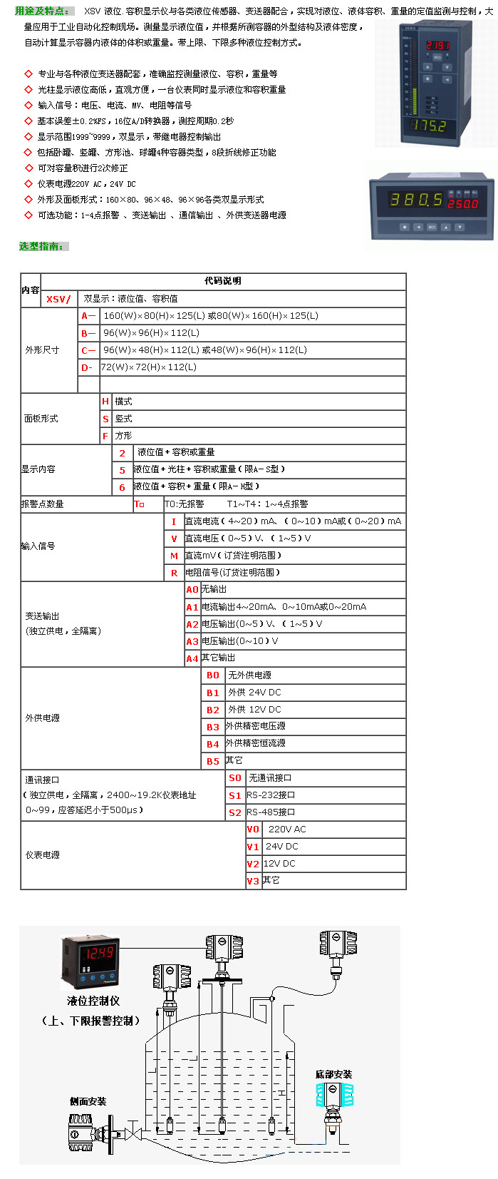 XSV/A-S,XSV/A-F,XSV/B-H,XSV/B-S,XSV/C-F,XSV/D-H,XSV/D-S,XSV/D-F,XSV,液位容积显示仪