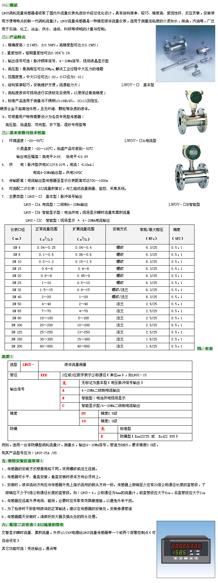 LWGY-4,LWGY-6,LWGY-10,LWGY-15,LWGY-20,LWGY-25,LWGY-32,LWGY-40,LWGY-50,LWGY,涡轮流量计