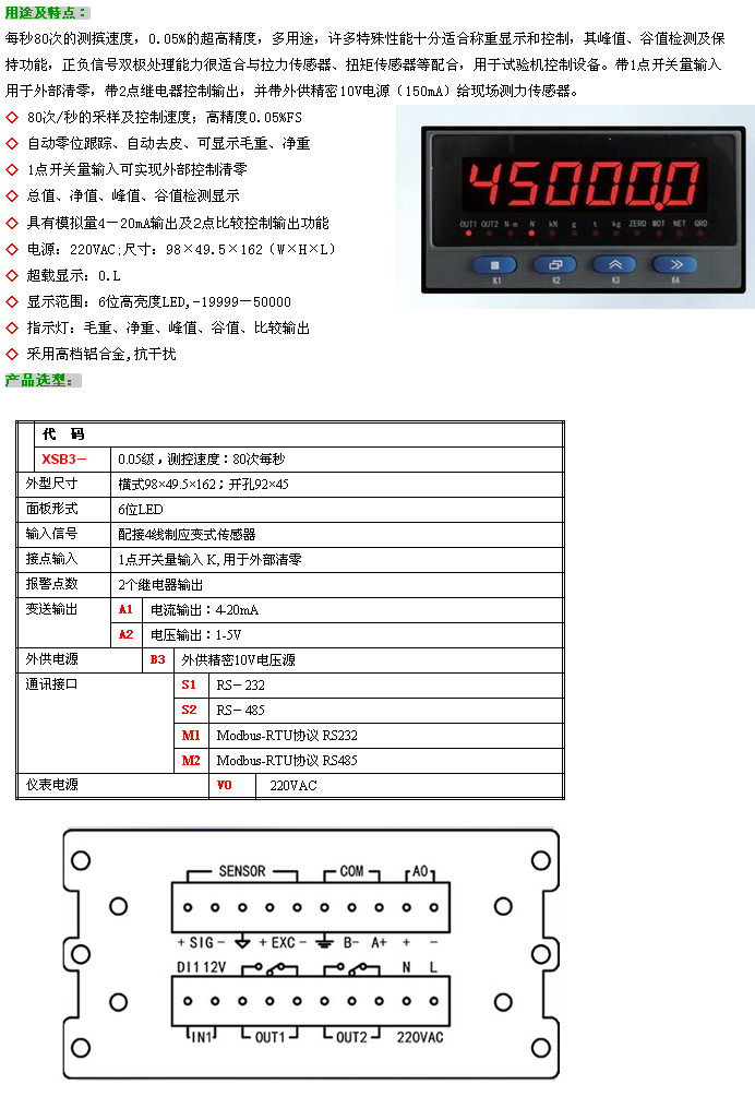 XSB3-A1B3S1V0,XSB3-A1B3S2V0,XSB3-A2B3M1V0,XSB3-A2B3M2V0,XSB3,力值显示控制仪
