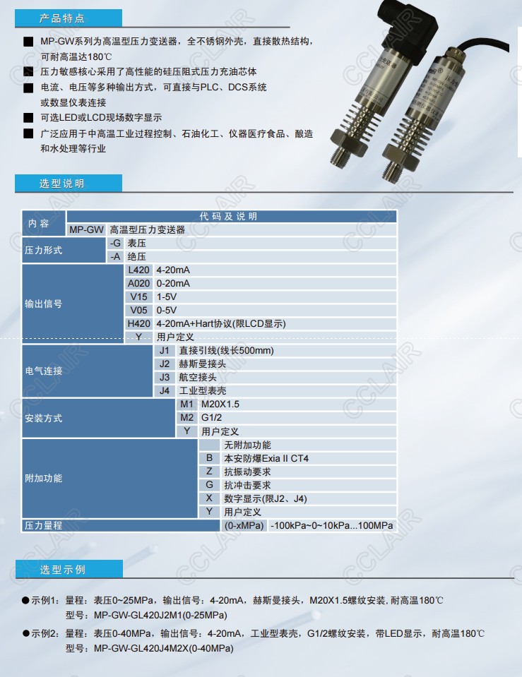 MP-GW-G,MP-GW-A,MP-GW-GL420J2M1,MP-GW-GL420J4M2X,MP-GW,高温型压力变送器