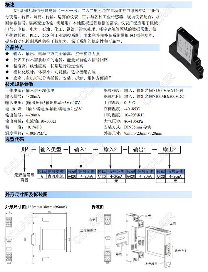 XP-A-A420-A420,XP-A-2A420-2A420,XP,无源信号隔离器