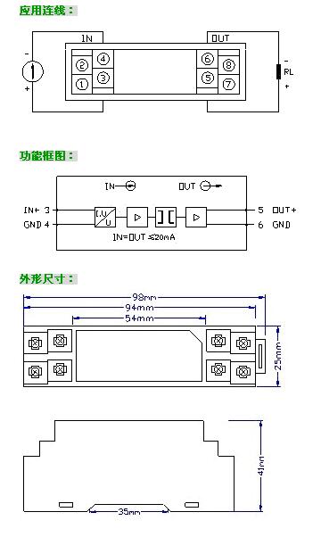 可与各种电流信号输出的温度、压力、液位、流量变送器等配套使用,完成取回参数信号、隔离转换输出的工作,输出信号可接入数显仪、PLC、变频器等设备,并对接收设备起保护作用。