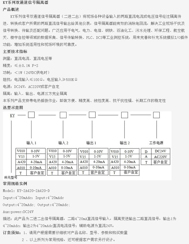 KY-A-2A420-2A420-D,KY,双通道信号隔离器