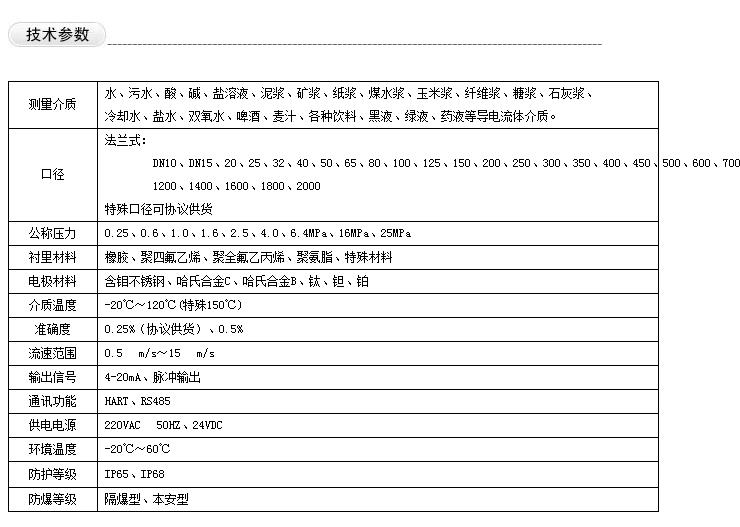 适 用:纸浆、污水、能抗固体颗粒干扰 不适用:无机酸、有机酸、氯化物 |