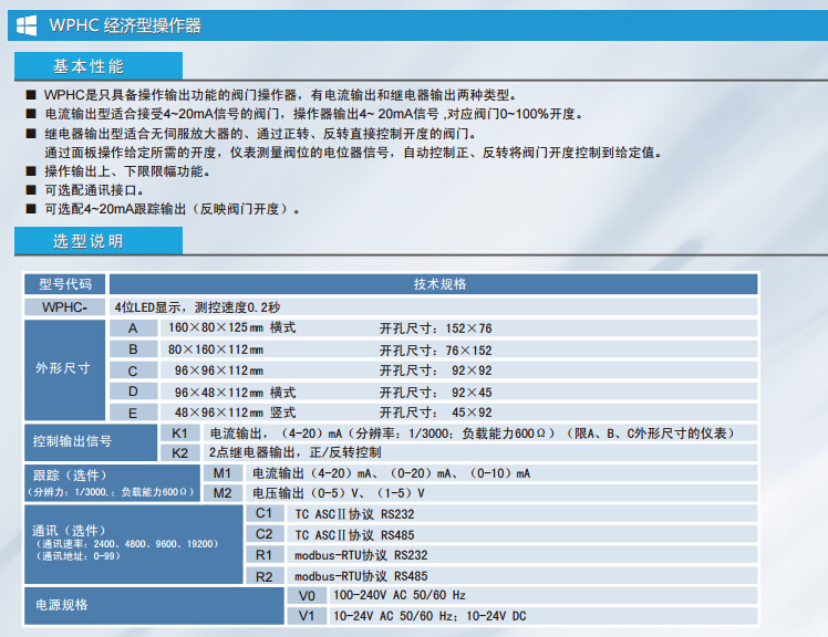 WPHC-A,WPHC-B,WPHC-C,WPHC-D,WPHC-E,WPHC经济型操作器