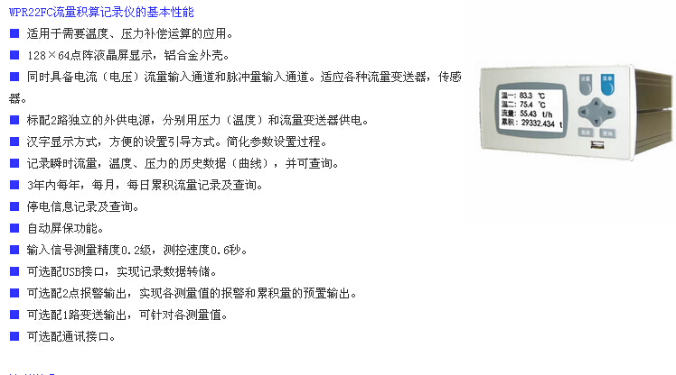 WPR22FC-IK,WPR22FC-VK,流量积算记录仪