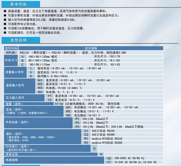 WPJB-A,WPJB-B,WPJB-C,温压补偿计算仪