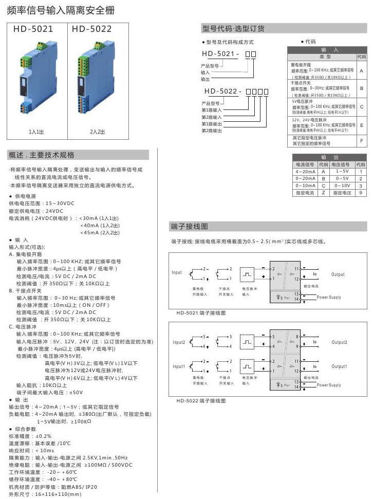 HD-5021,HD-5022,频率信号输入隔离安全栅