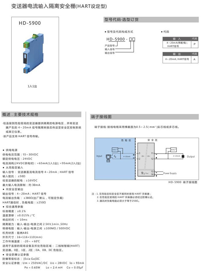 HD-5900-PA,HD-5900,变送器电流输入隔离安全栅