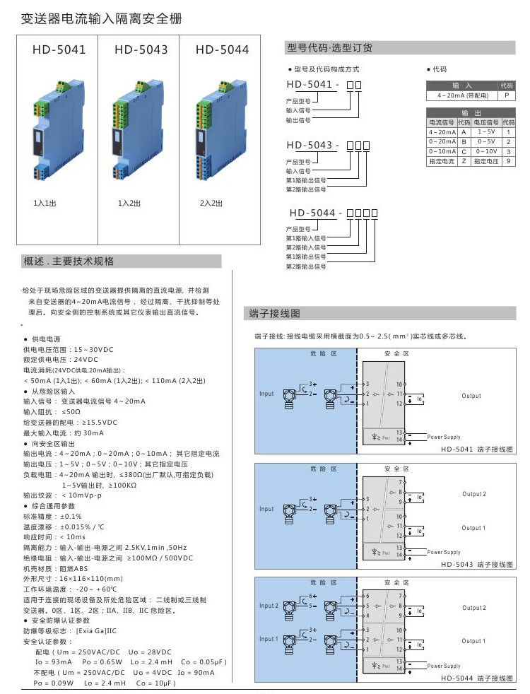 HD-5041,HD-5043,HD-5044,变送器电流输入隔离安全栅