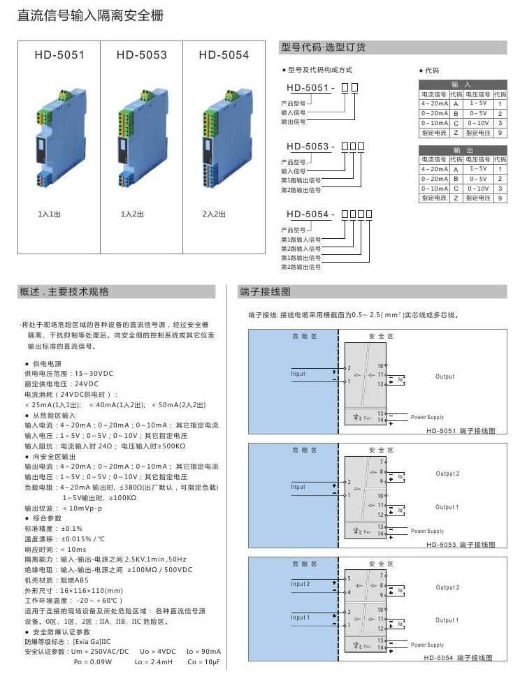 HD-5051,HD-5053,HD-5054,直流信号输入隔离安全栅