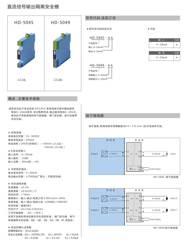 HD-5045-AA,HD-5049-AA,HD-5045,HD-5049,直流信号输出隔离安全栅