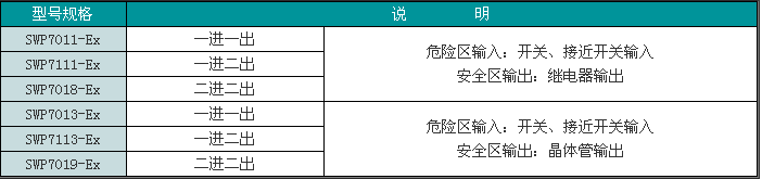 SWP7011-Ex,SWP7111-Ex,SWP7018-Ex,SWP7013-Ex,SWP7113-Ex,SWP7019-Ex开关量输入隔离式安全栅