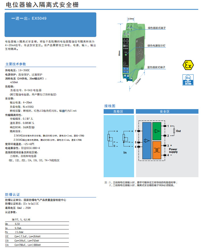 EX5049,电位器输入隔离式安全栅