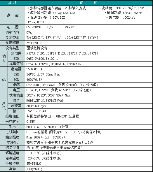 集数字仪表与模拟仪表于一体,可对温度、压力、液位、速度等测量信号进行数字量显示控制(高亮度LED数码显示)及相对模拟量显示(光柱显示),使测量值的显示更为清晰直观。0.2%高测量精度,通道算术运算功能,使用更为简单方便。