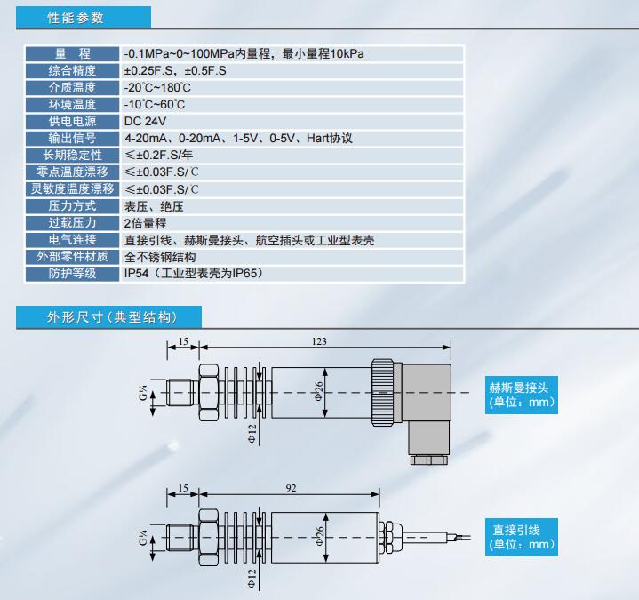 ■压力敏感核心采用了高性能的硅压阻式压力充油芯体