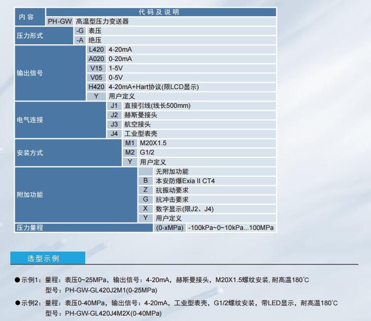 ■PH-GW系列为高温型压力变送器,全不锈钢外壳,直接散热结构,可耐高温达180℃