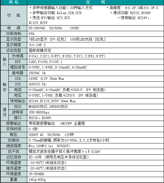 SWP-GFC系列高精度型单回路数字/光柱显示控制器集数字仪表与模拟仪表于一体,可对温度、压力、液位、速度等测量信号进行数字量显示控制(高亮度LED数码显示)及相对模拟量显示(光柱显示),使测量值的显示更为清晰直观。0.2%高测量精度,通道算术运算功能,使用更为简单方便。