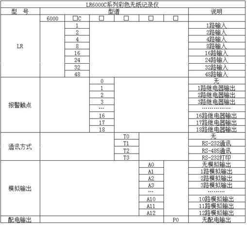 LR6000C系列彩色无纸记录仪48路(不含报警,变送等其它功能)万能输入(可组态选择输入:标准电压、标准电流、热电偶、热电阻、频率、毫伏等)。可带18路报警输出,12个变送输出,RS232/485通讯接口,以太网接口,微型打印机接口和USB接口,SD卡插座;可提供传感器配电;具有强大的显示功能,实时曲线显示,历史曲线追忆,棒图显示,报警列表显示。人性化的外观设计、完美的功能体现、可靠的硬件品质、精湛的制造工艺,使LR6000C具有更高的性能价格比。