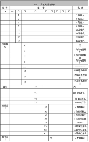 LR6000C系列彩色电流记录仪48路(不含报警,变送等其它功能)万能输入(可组态选择输入:标准电压、标准电流、热电偶、热电阻、频率、毫伏等)。可带18路报警输出,12个变送输出,RS232/485通讯接口,以太网接口,微型打印机接口和USB接口,SD卡插座;可提供传感器配电;具有强大的显示功能,实时曲线显示,历史曲线追忆,棒图显示,报警列表显示。人性化的外观设计、完美的功能体现、可靠的硬件品质、精湛的制造工艺,使LR6000C具有更高的性能价格比。