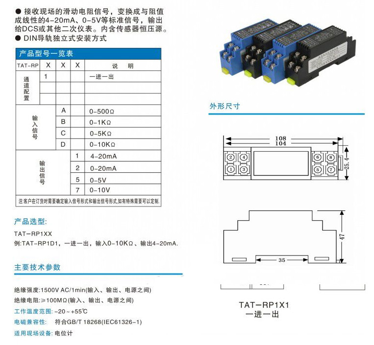 TAT-RP1A1,TAT-RP1A7,TAT-RP1B5,TAT-RP1C2,TAT-RP1D7,TAT-RP,电位计信号隔离器