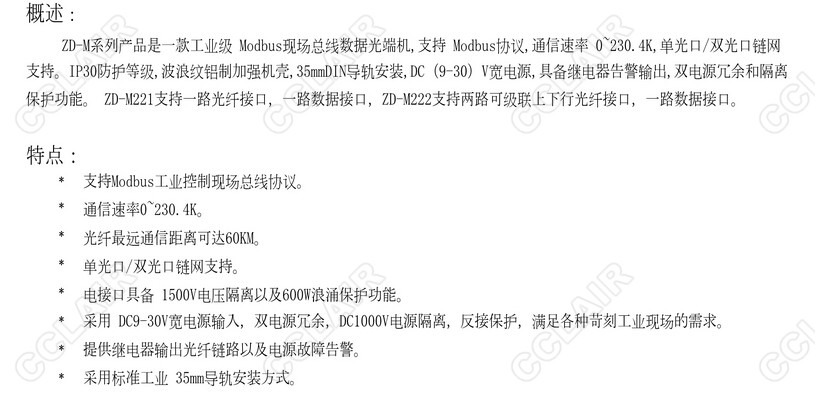 ZD-M,Modbus总线数据光端机