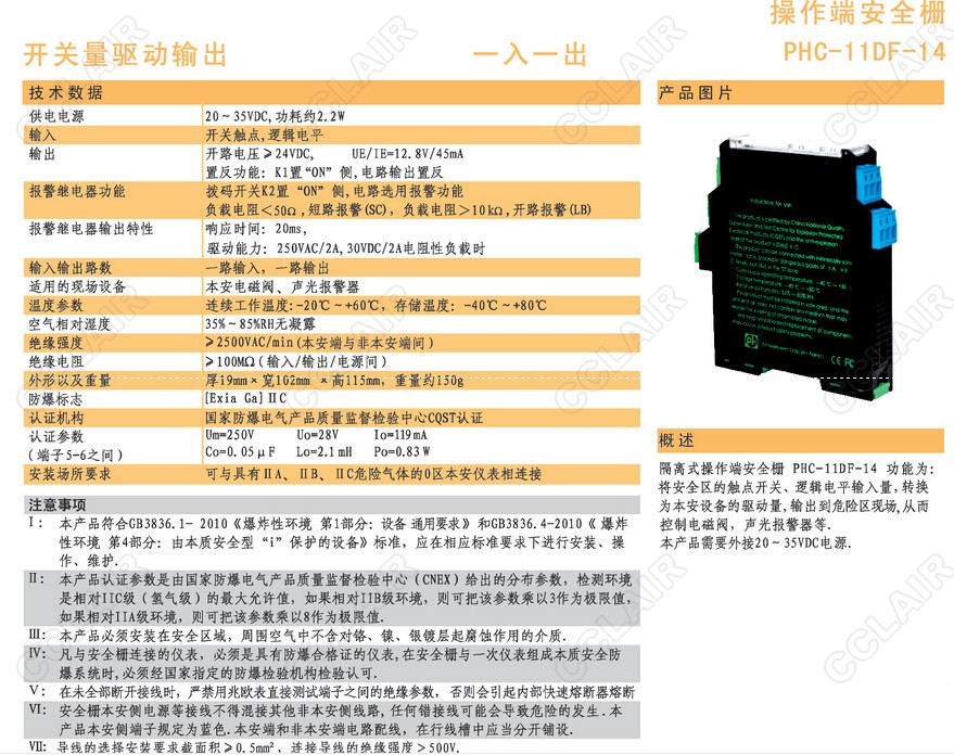 PHC-11DF-14隔离式安全栅