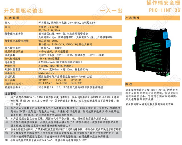 PHC-11NF-36隔离式安全栅
