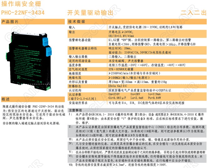 PHC-22NF-3434隔离式安全栅