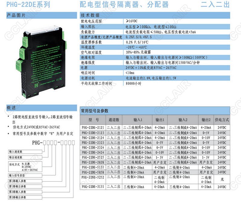 PHG-22DE-2828,PHG-22DE-5151,PHG-22DE-5858,PHG-22NE-5252,PHG-22DE-3131配电型信号隔离器分配器