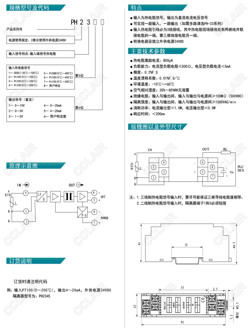 PH2311,PH2323,PH2334,PH2341,PH2353,PH2371,PH-2375,PH-23,热电阻型信号隔离器