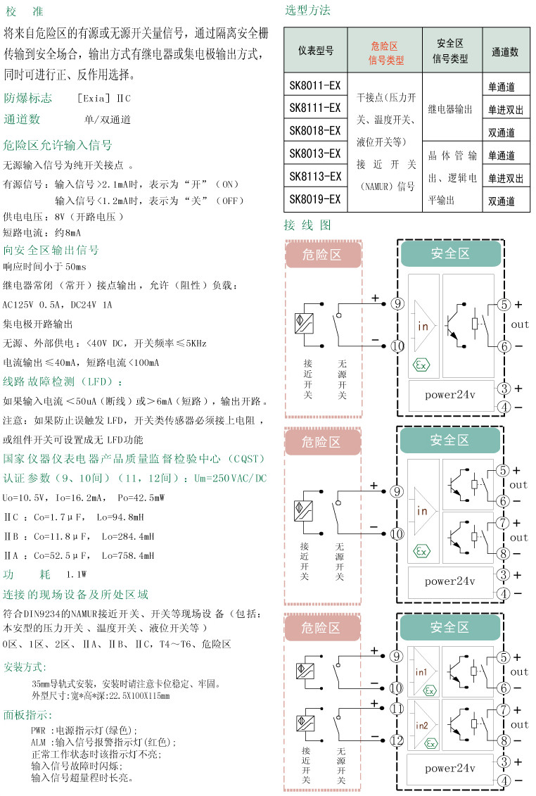 SK8011-EX,SK8111-EX,SK8018-EX,SK8013-EX,SK8113-EX,SK8019-EX,SK,开关量入检测端隔离安全栅
