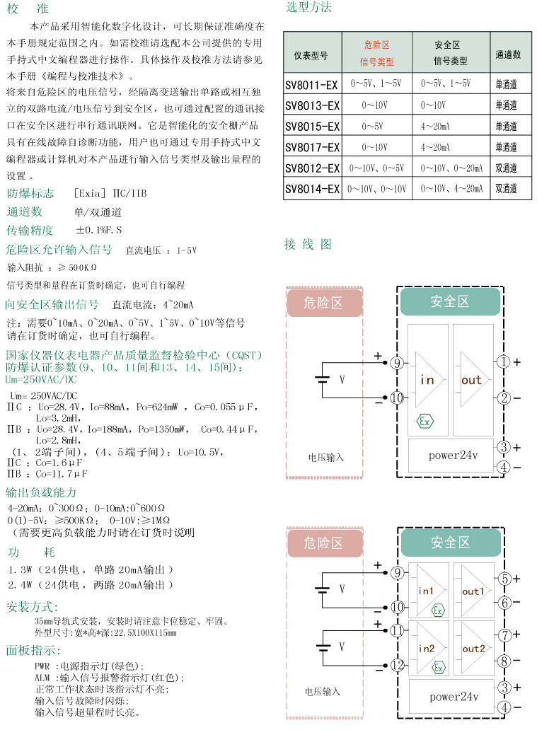 SV8011-EX,SV8013-EX,SV8015-EX,SV8017-EX,SV8012-EX,SV8014-EX,SV,电压输入检测端隔离安全栅