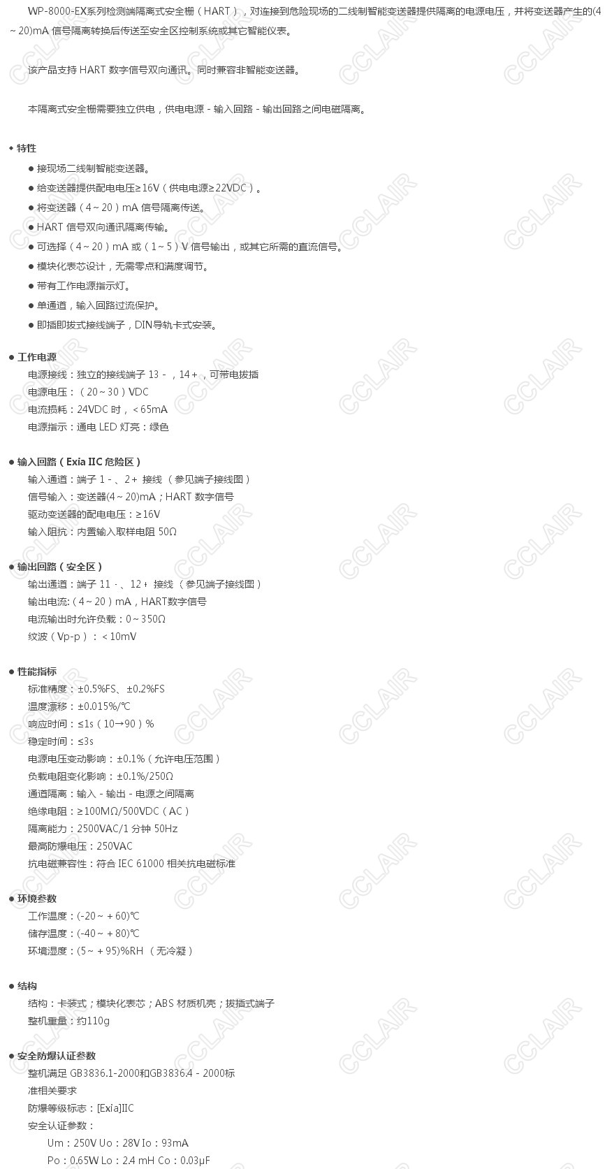 WP-8041-EX,检测端隔离式安全栅(HART)