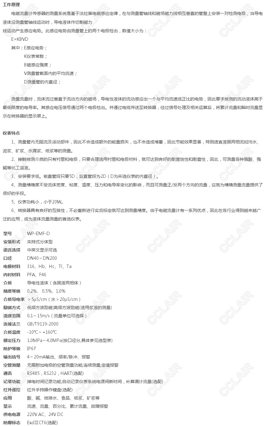 WP-EMF-D,夹持式分体型电磁流量计