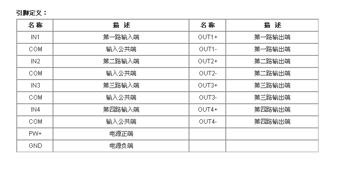 4路干接点输入,4路干接点输出输入输出继电器隔离