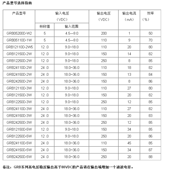 GRB05200D-W2,GRB05110D-1W,宽电压输入高电压稳压输出.