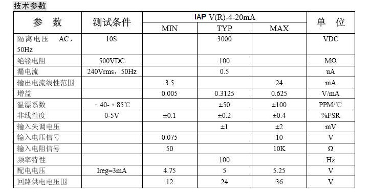 独有高效信号回路窃电技术,无须外接工作电源两线制V/I转换模拟信号输入与输出3000VDC隔离