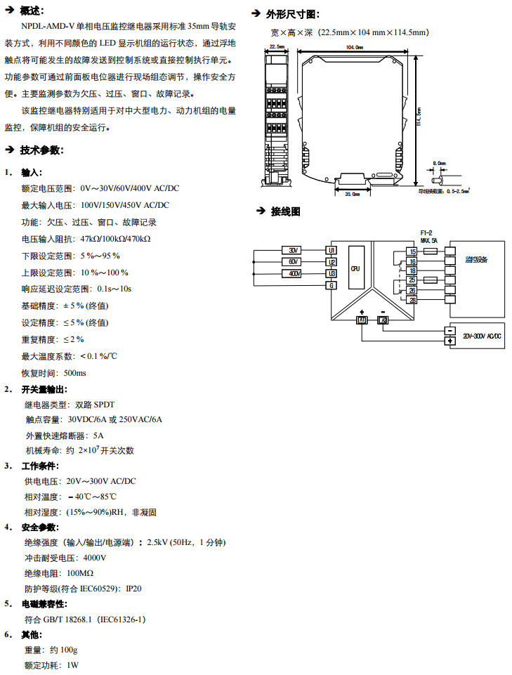 NPDL-AMD-V-400,单相电压监控继电器