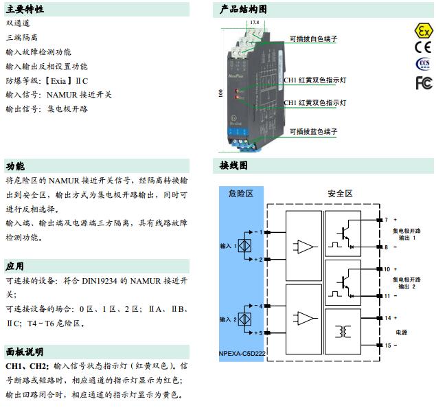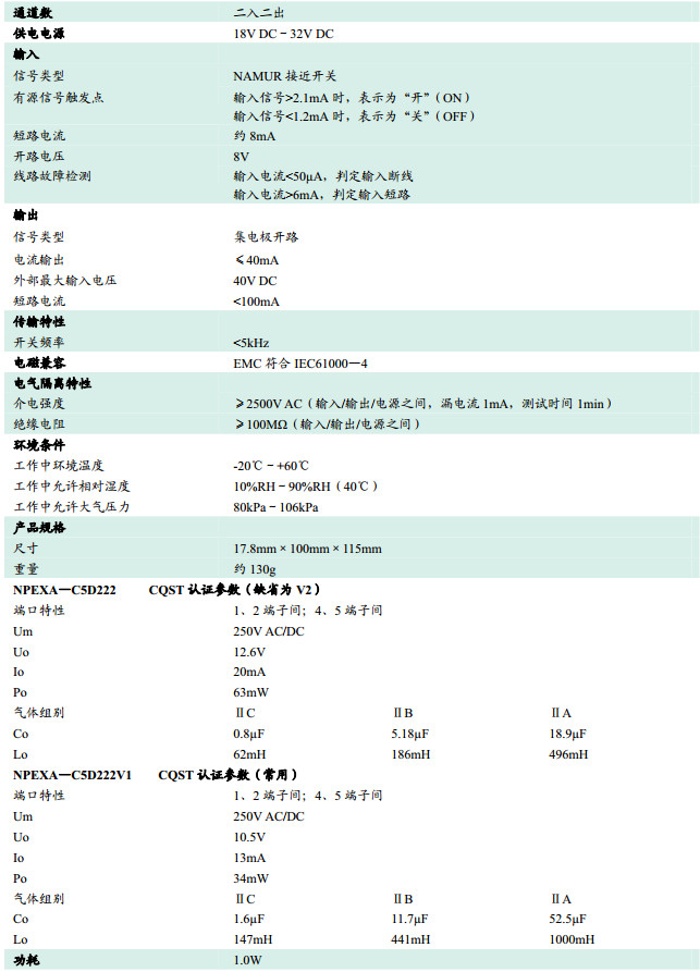 NPEXA-C5D222,NPEXA-C5D222V1,检测端隔离式安全栅