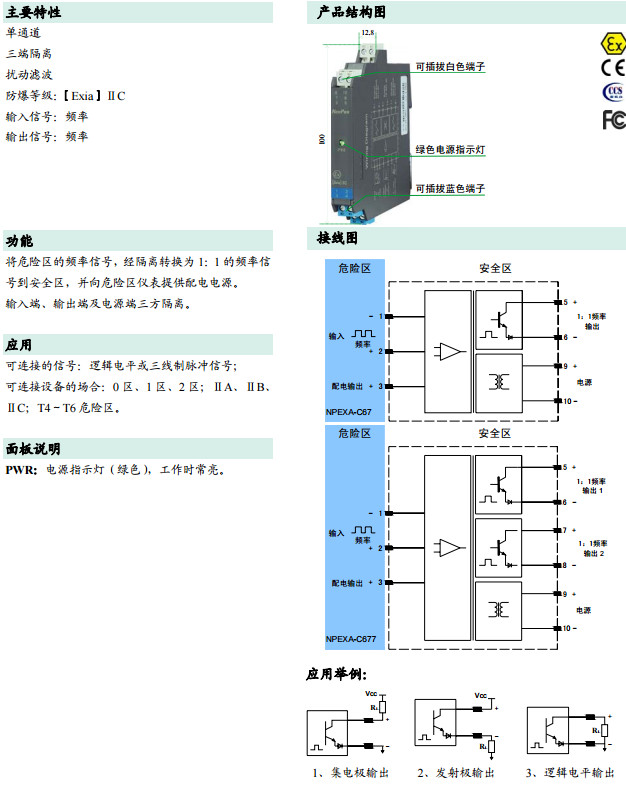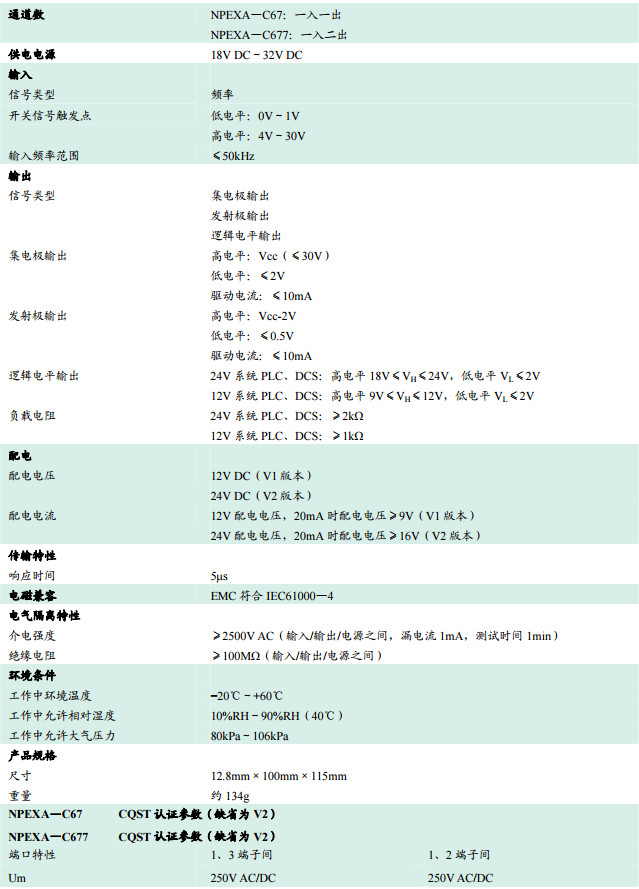 NPEXA—C67,NPEXA-C677,频率输入型隔离式安全栅