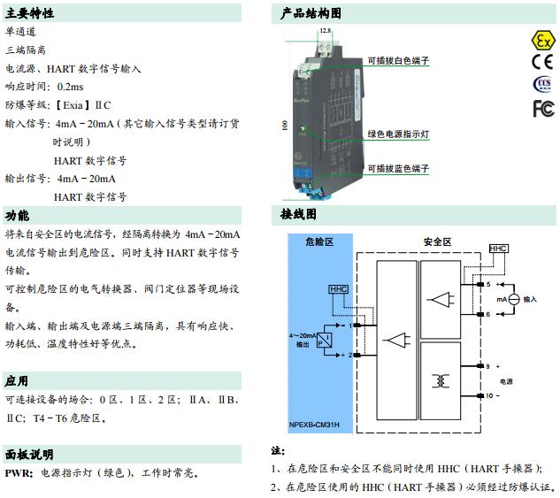 NPEXB-CM31H,电流输出型隔离式安全栅