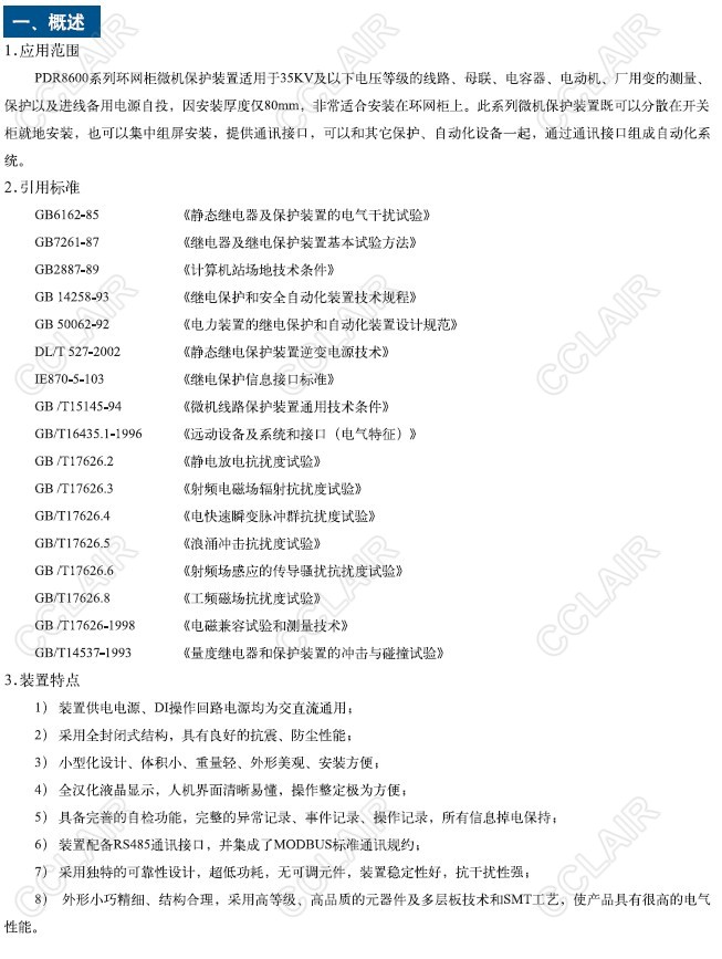 PDR8600,PDR8610,PDR8620,PDR8660环网柜微机保护装置简介