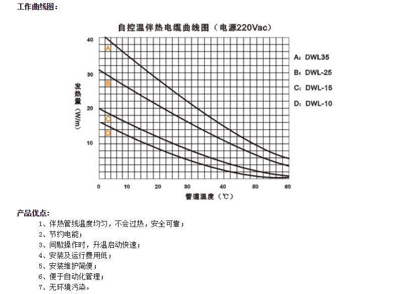 ⒈电热带相应被伴热体系具有自动调节输出功率,因此不会因自身发热耐烧毁,却因实际需要热量进行补偿;