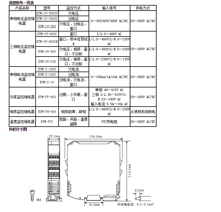 单相电压监控继电器