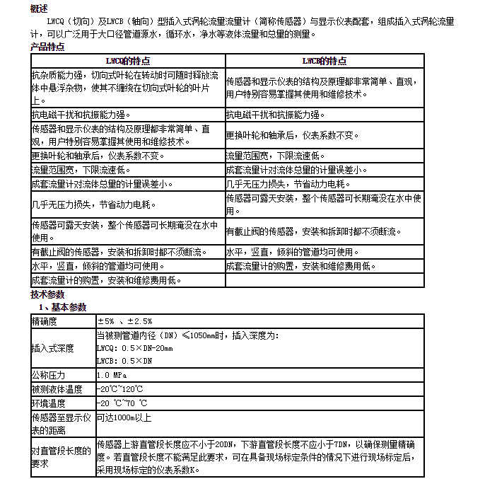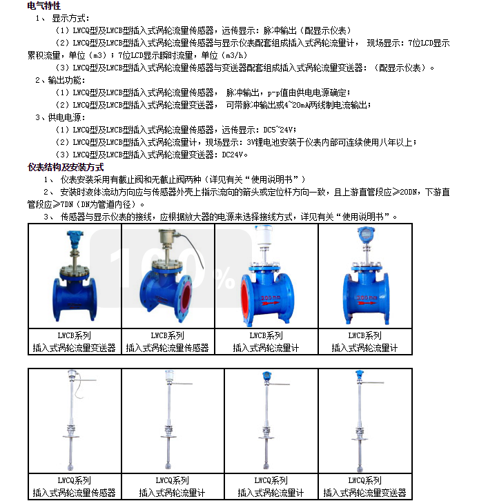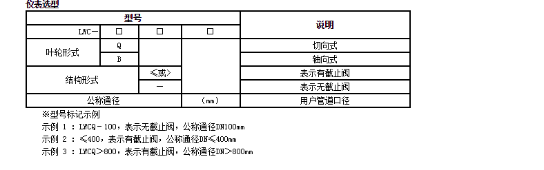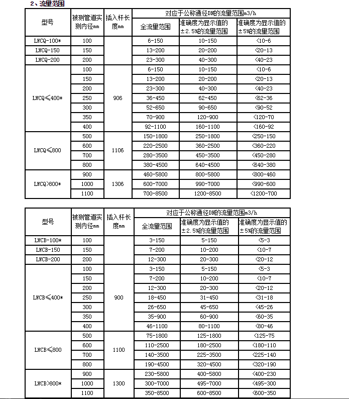 LWCQ-100*,LWCQ-150,LWCQ-200,LWCQ≤400*,LWCQ≤800,LWCQ>800*,插入式涡轮流量流量计
