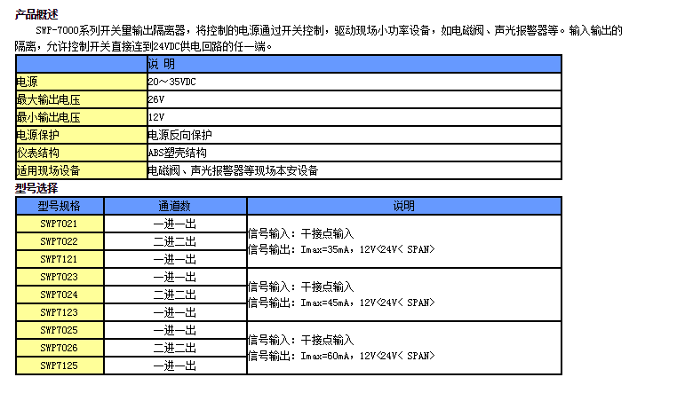 SWP7021,SWP7022,SWP7121,SWP7023,SWP7024,SWP7123,开关量输出隔离器